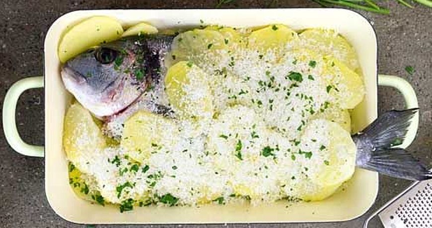 In Puglia uno di questi ingredienti è il formaggio pecorino: anche se in molti credono che il pesce non si debba condire con il formaggio, provando questo piatto ci si ricrede; l’orata con patate, pecorino, aglio e prezzemolo produce una perfetta e ricca combinazione di sapori di terra e mare.