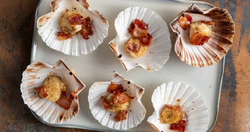 Capesante al bacon e pepe verde